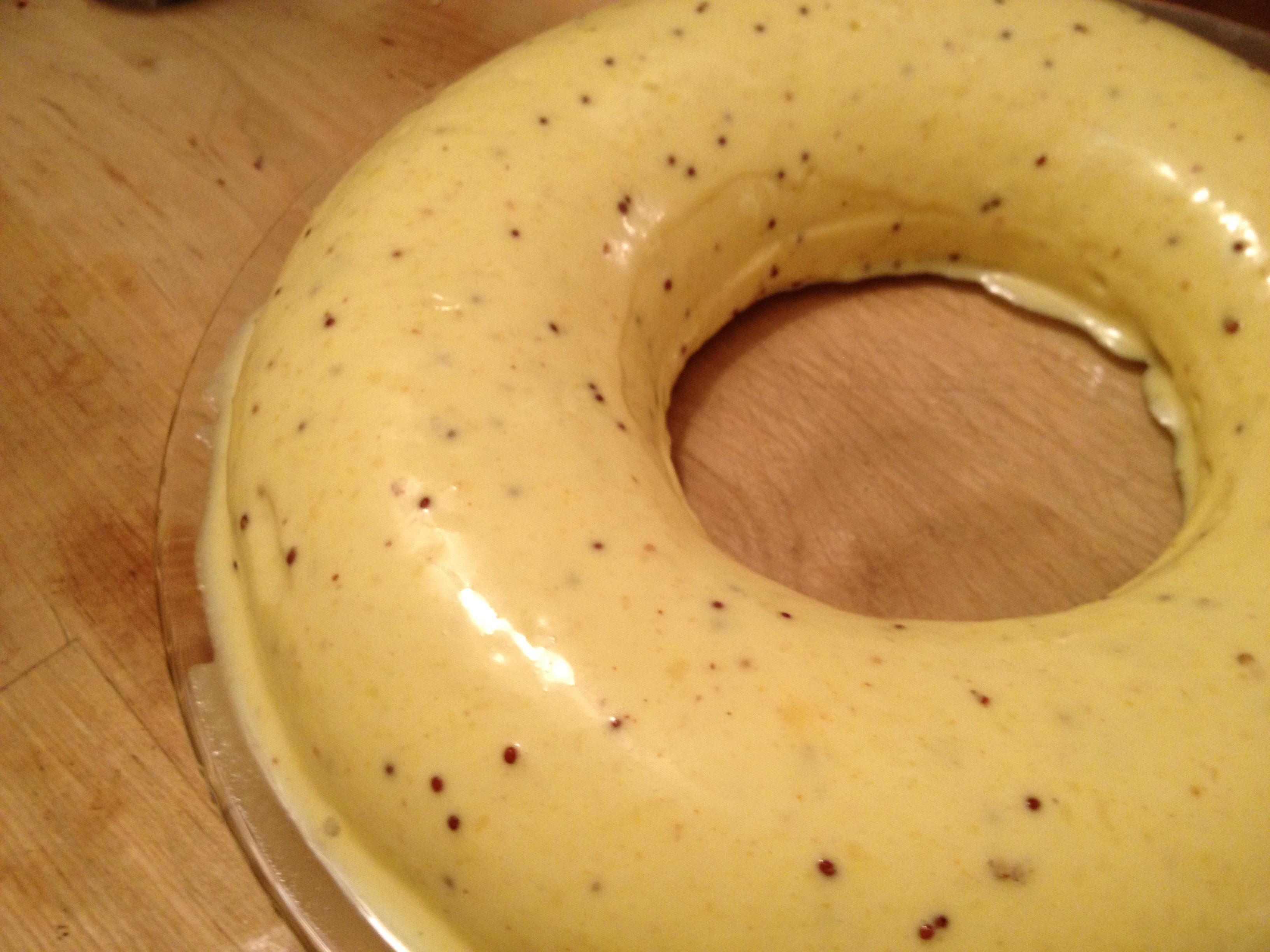 Sticking with testing recipes for the NCJW/LA cookbook I have a seriously weird one for you today. The title on the page that gave us pause was “Marge’s famous mustard ring”. For some reason this struck me as having possibilities… Now I know that both brother and sister are shaking their heads in wonder. I HATED mustard as a kid but now not only love good interesting (and usually hot mustards) I make my own. So I followed the recipe (pretty much) and then after tasting it added some of my homemade whole grain mustard. But I’m going to write