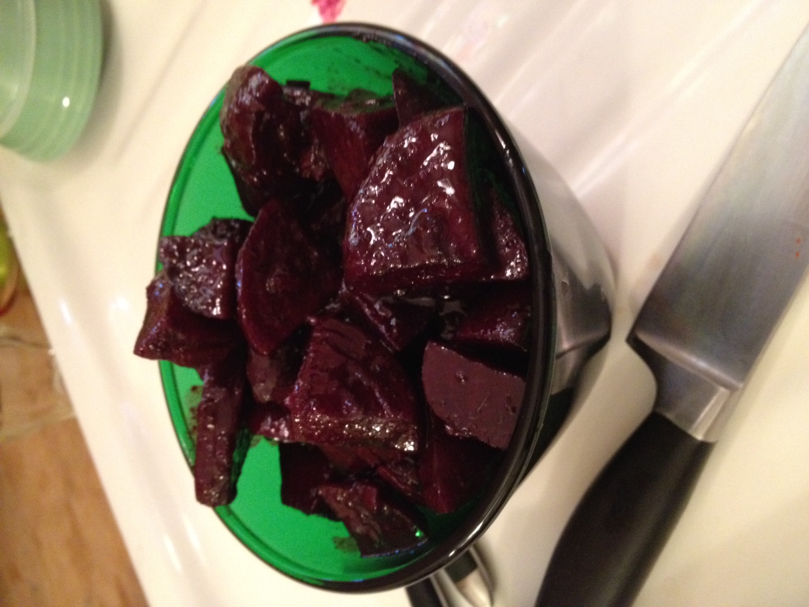 Oh, yes and I’ll serve the beet salad on butter lettuce. It was just too warm to heat up the oven (and the house) to roast them so this is my summer stovetop method. Beets are a bit messy but well worth it in my opinion.