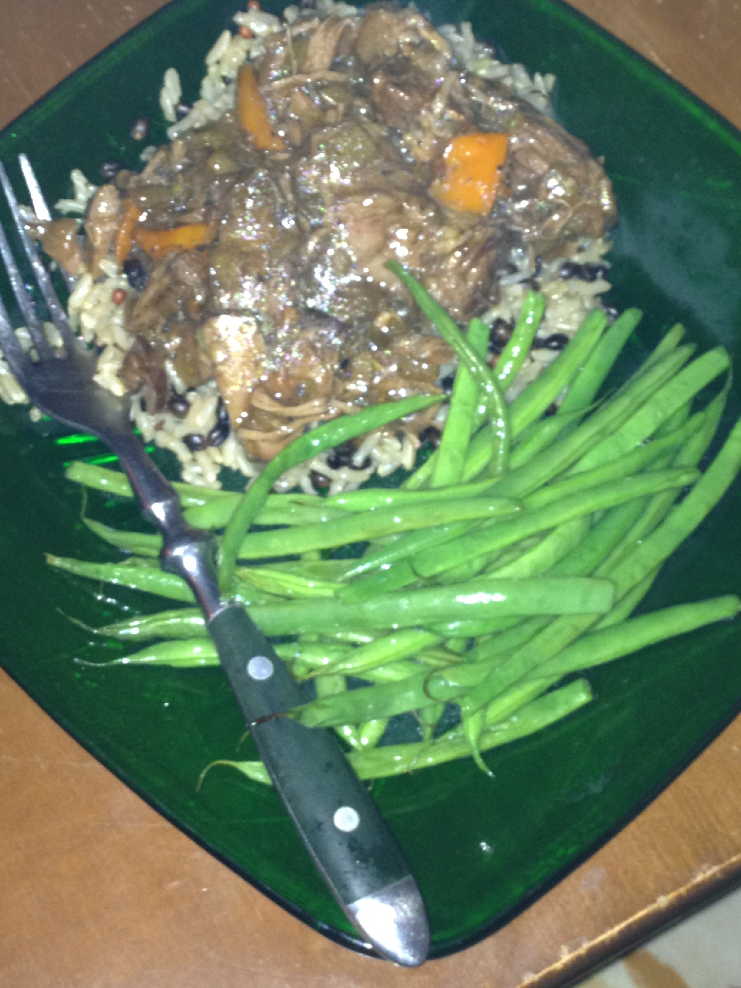 Onions, celery, bell pepper and half a jar of a locally made jerk sauce (thanks for the gift, Deb!). It was REALLY good.