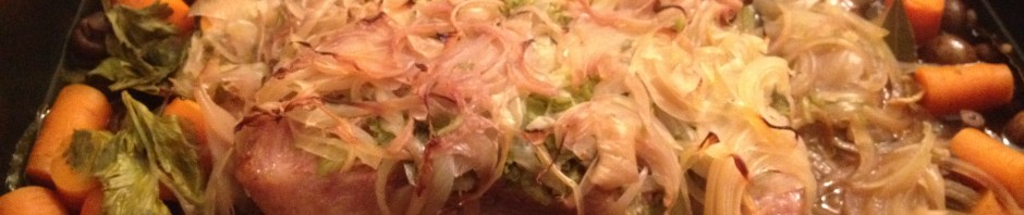 tomorrow with chives from my tiny garden and super fresh olive oil), made my beet salad with a few adjustments for the holiday restrictions, cooked the brisket (pretty traditional oven braise with lots of onions, celery and mushrooms). I have the GREAT luxury of a bay laurel tree, so I laid down a bed of bay leaves under the brisket. I’ll slice it tomorrow and put it back in the oven for about an hour and a half (on top of 4 hours today). The stock for the soup was made about a month ago and frozen. I’ll make matzo balls and chrosset tomorrow.