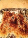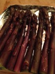 So, my brother called while I was on the way to the farmers market and asked if I thought he could use red snapper in a recipe that called for skate. The conversation wandered to the Bittman recipe for broiled asparagus with Parmesan and bread crumbs that he was going to make to go with it. Well, I went straight to Zuckerman’s and bought a beautiful bunch of fat purple asparagus.
