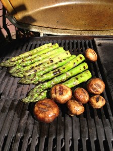 Last night I cooked a beautiful piece of snapper and made a salad, but this morning I realized that there was some asparagus that I meant to grill too. Since it is so easy to do I fired the grill up and cooked the asparagus along with a few mushrooms that were in the crisper drawer for good measure.