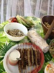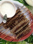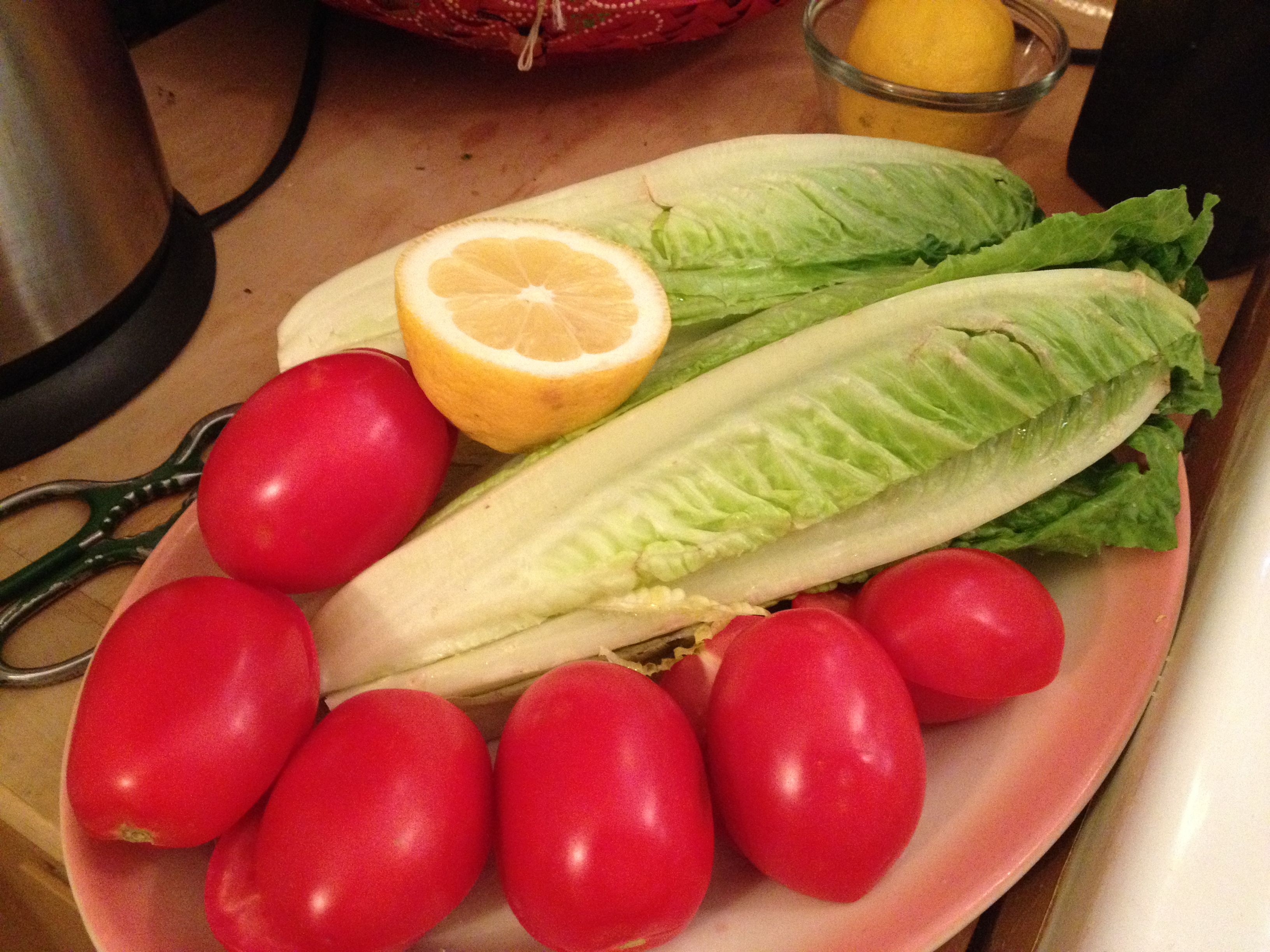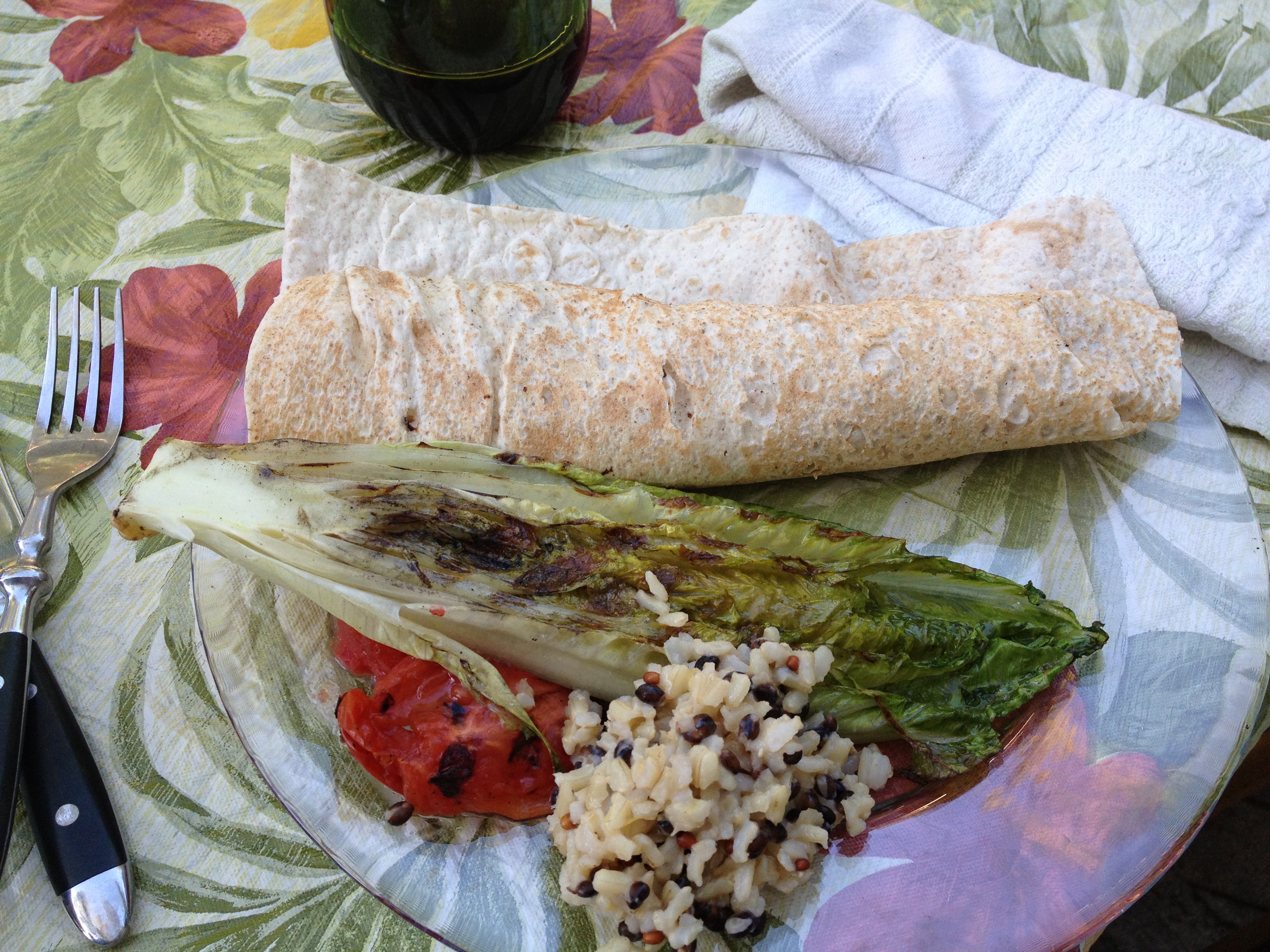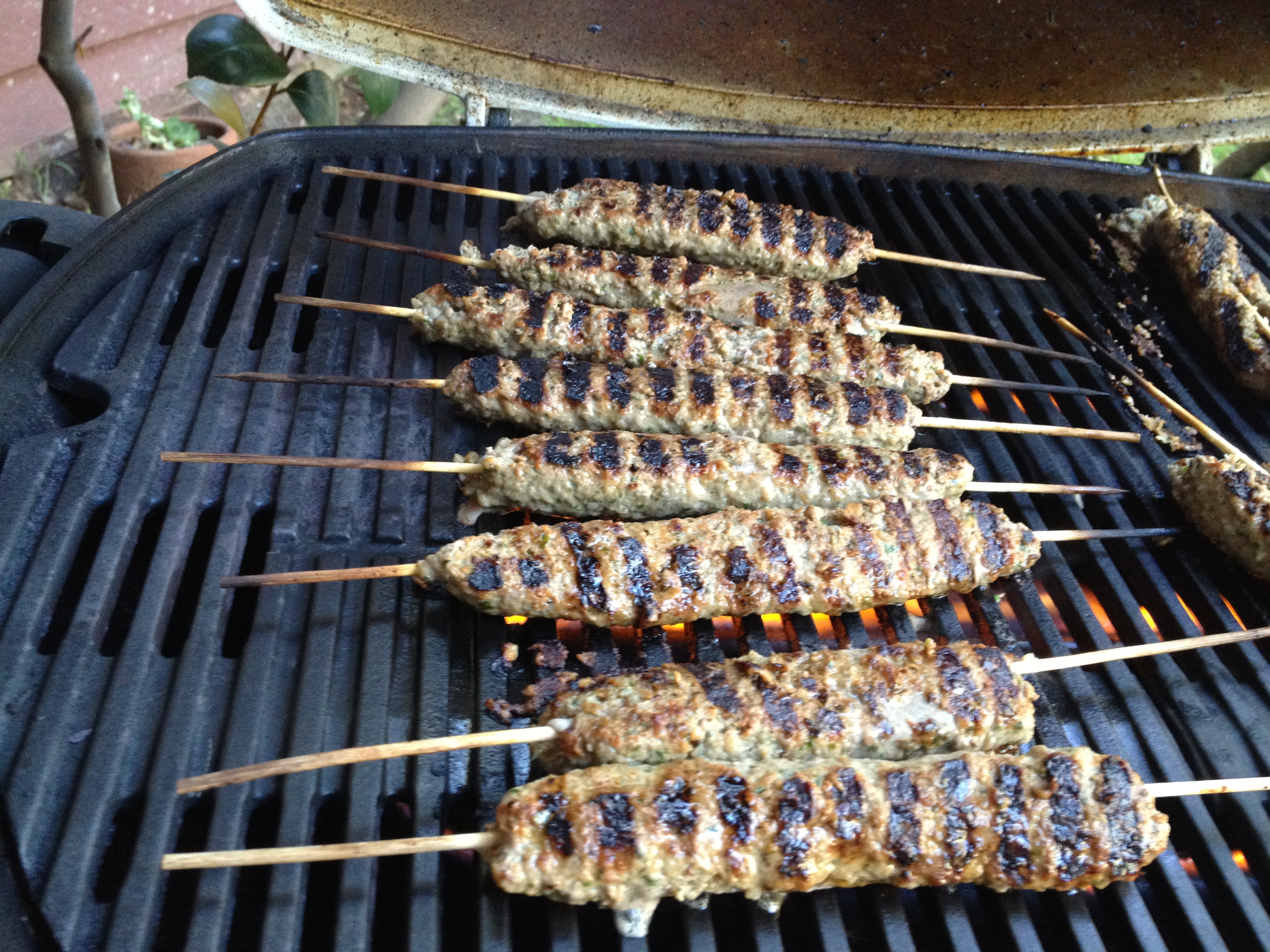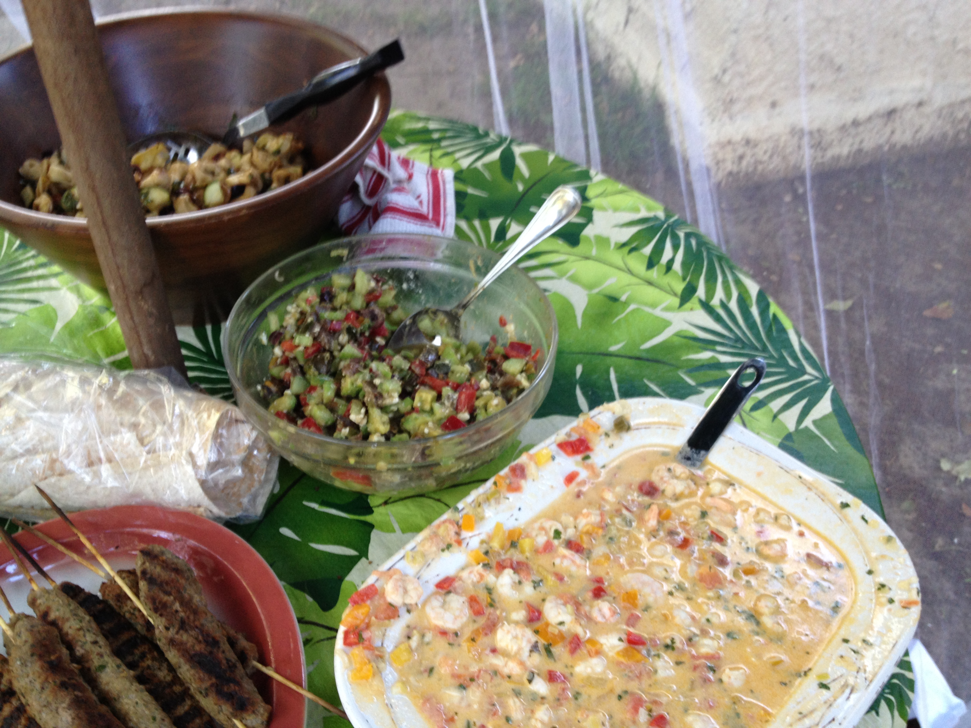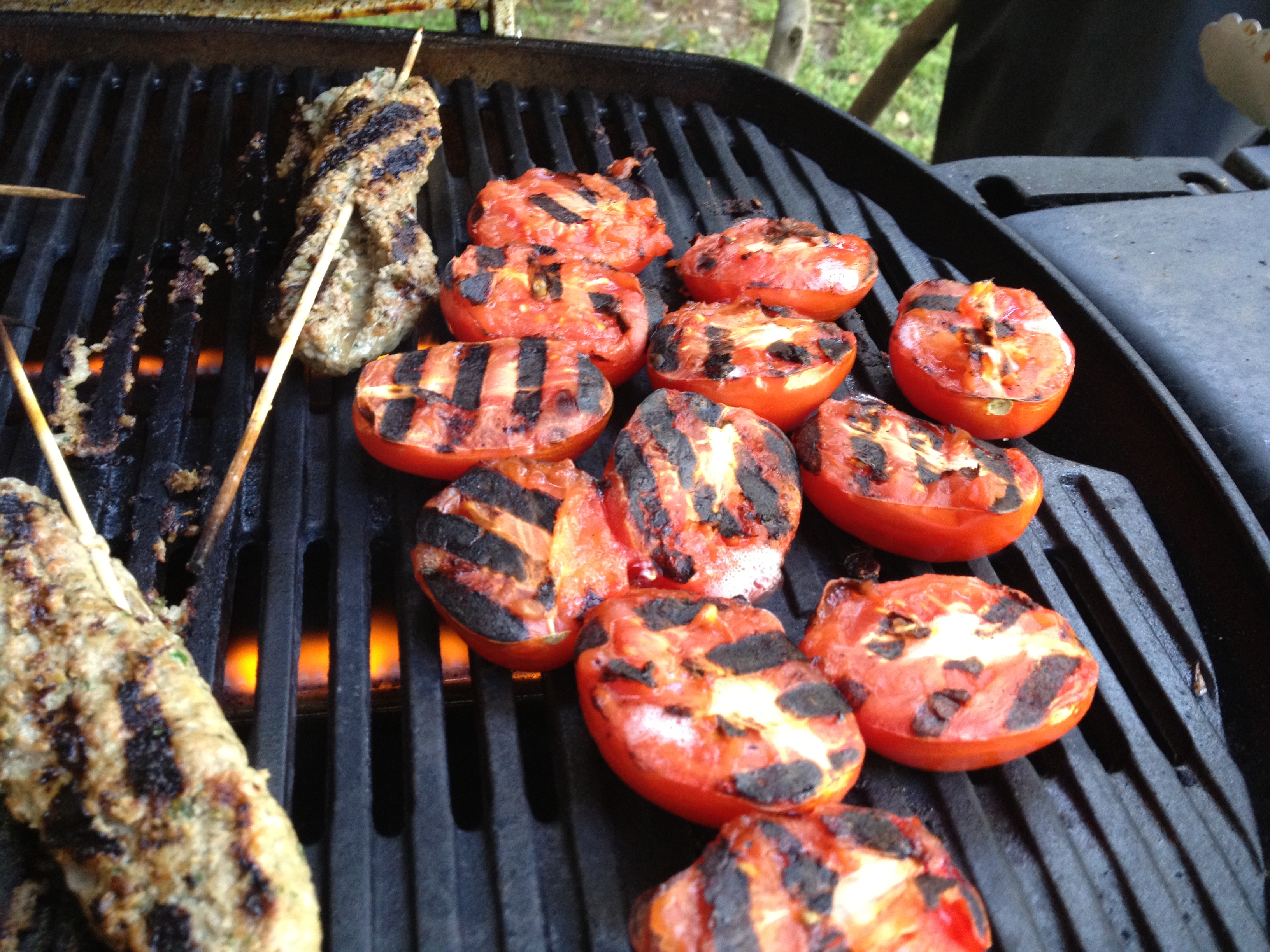 I used a recipe from Fellow wordpresser Conor Bofin. Well, at least I read it before I went shopping… I used a mix of beef and lamb in my kabobs and made a yogurt tahini sauce. Grilled tomatoes and romaine with just a little olive oil and lemon. There was swordfish, corn lots o’ guacamole and plenty of dessert +++.