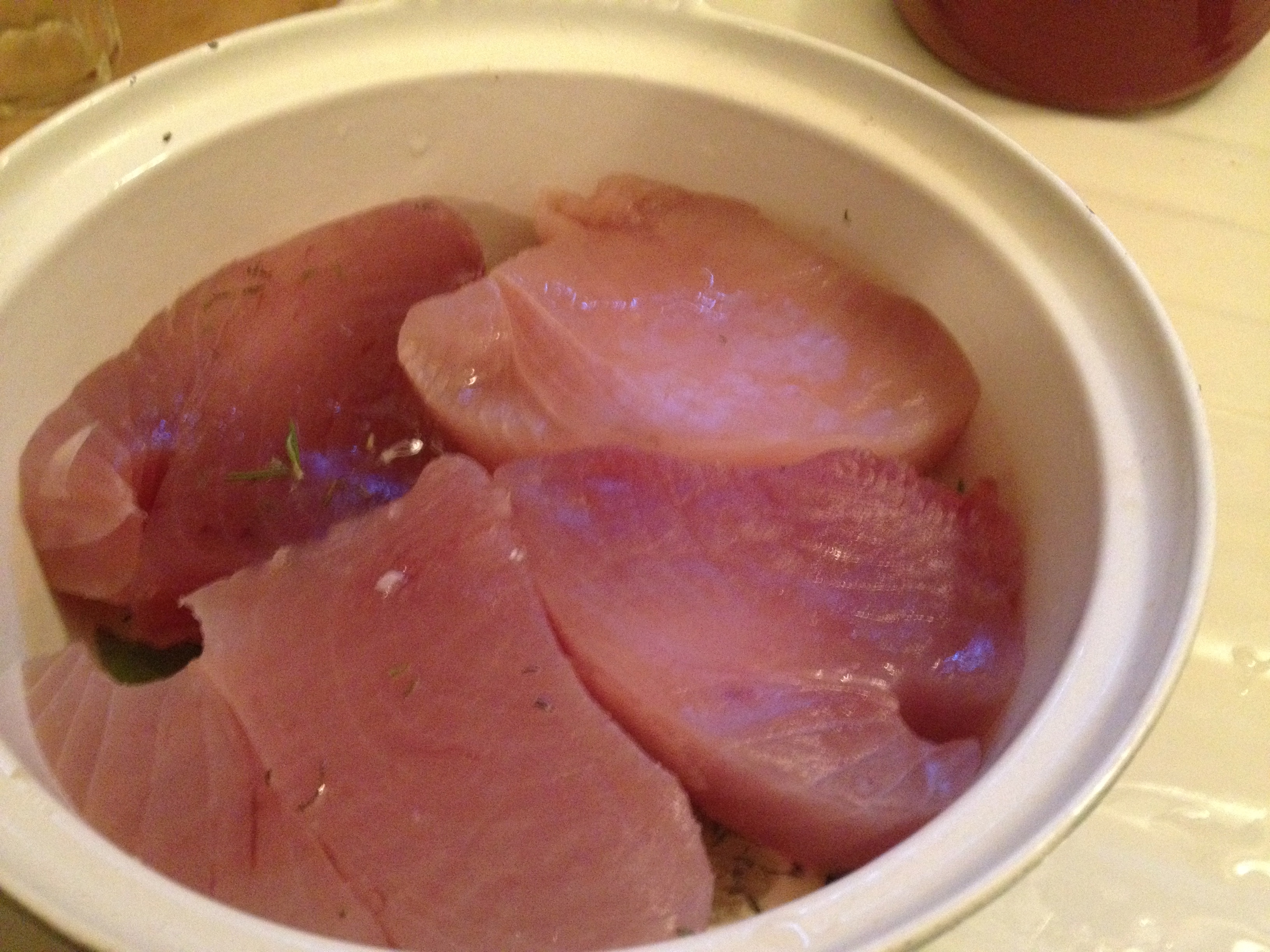 My friends Debbie and Jodi invited me to join the crowd at their house for break fast on Yom Kippur and asked me to bring tuna salad. Well, I hope they know that there will be no can or store bought mayo involved… Price was not my first consideration but, Trader Joe’s sells frozen albacore filets for less per pound that their canned tuna. Nice bonus!