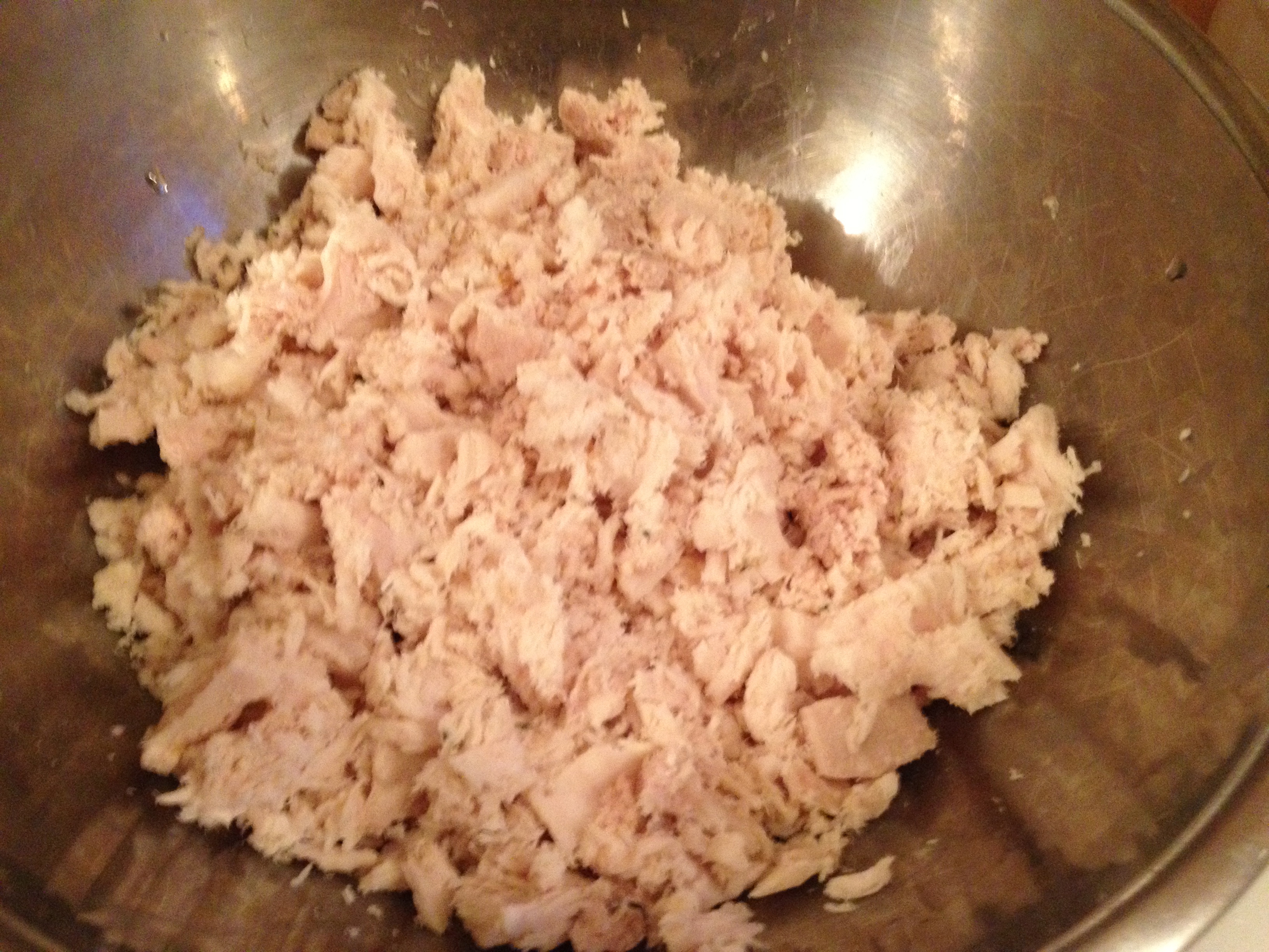 Wash your hands WELL and flake up the fish by smushing it (that’s a technical cooking term of course).
