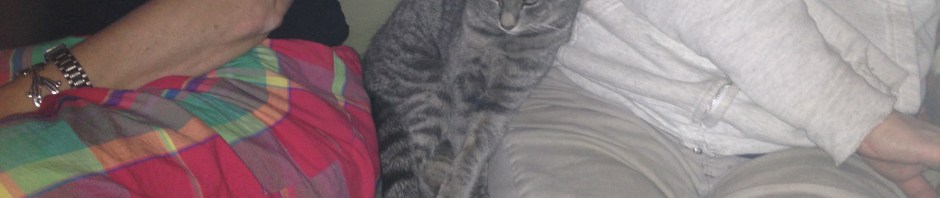 On Sunday night Angus didn’t come in no matter where I walked around the courtyard and called or rattled the dry food for him to hear. Monday morning, still no Angus. I left for work and text-messaged a few neighbors to keep an eye out. Well, they did more than that. I came home to find them still out searching (they had been out looking on and off all day). Even the courtyard cats – Angus’ best friend Pico, Mars pacing the rooftops, Leo and Zed tagging along and 3-legged Bebop who cries at my door when Angus can’t come out to play – were at it all day. Angus finally responded to my voice and once we got him coaxed over the fence and in the house we sat around him in a circle toasting him. Hope he doesn’t get too used to the idea of being the center of the party…