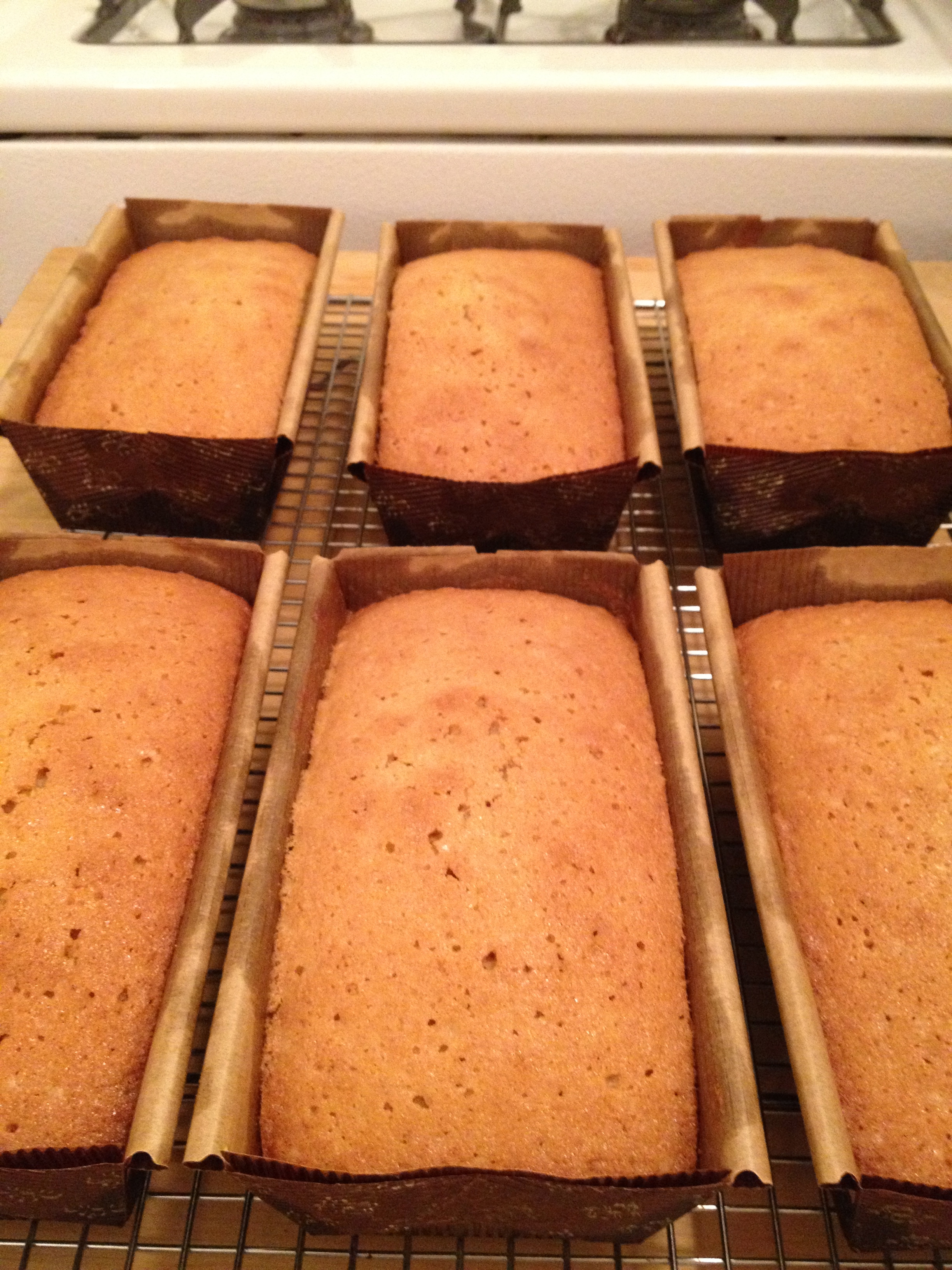 Maybe I should have made angel food cake, but I don’t really like it so pound cake it is. Don’t look for a recipe here; pound cake is one of those things that doesn’t need to be reinvented. A pound each flour, butter, sugar and eggs plus a little salt and vanilla (lemon extract if you want to add it). That makes 2 large loaves or 6 mini’s. This was my first time using paper pans too which makes them easy to gift. That brings me back to the title.