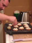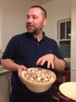 Now, some of you know about where I live but some don’t – I live in a lovely (oldest and largest in the US) bungalow court. The owner’s nephew/cousin/relation-by-marriage newly arrived from Greece has moved into the “teahouse” which is above the laundry & tool room across the way from me. Well, it turns out that he is a professional chef and tonight he showed his stuff.