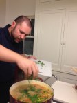So he made chicken and vegetable soup. The prep took far longer than the cooking and you could taste all the separate ingredients in their fresh goodness. Chicken and peppers and onion and leeks and parsley and wine and mushrooms. Oh, and of course lemon and egg…