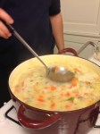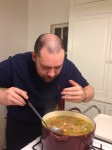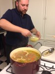 I was having one of those lazy afternoons after errands (and my nails) were done, dozing on the sofa when there was a knock on the door. It was my neighbor Heidi come to say that Demetrius (afore mentioned nephew/cousin/relation-by-marriage) was cooking in her kitchen and did I want to come for a bowl of soup. Well, hell yes! So I went over to her house and found out just how much Demetrius really truly LOVES to cook AND can skillfully wield and knife! We watched and listened as he prepped vegetables and chicken and made a pot of soup that will last three people and a few others more than a couple of days.
