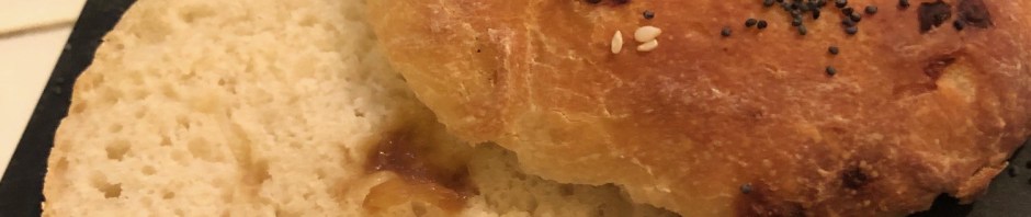 Today, though, I had something else in mind, a life-long favorite – bialys. No. They are not bagels without a hole; they’re a different, though related, creature. Bagels are formed and then boiled before baking. Bialys are a similar though different dough, with the hole more of an indentation, and that little dip in the middle is filled with caramelized onions.